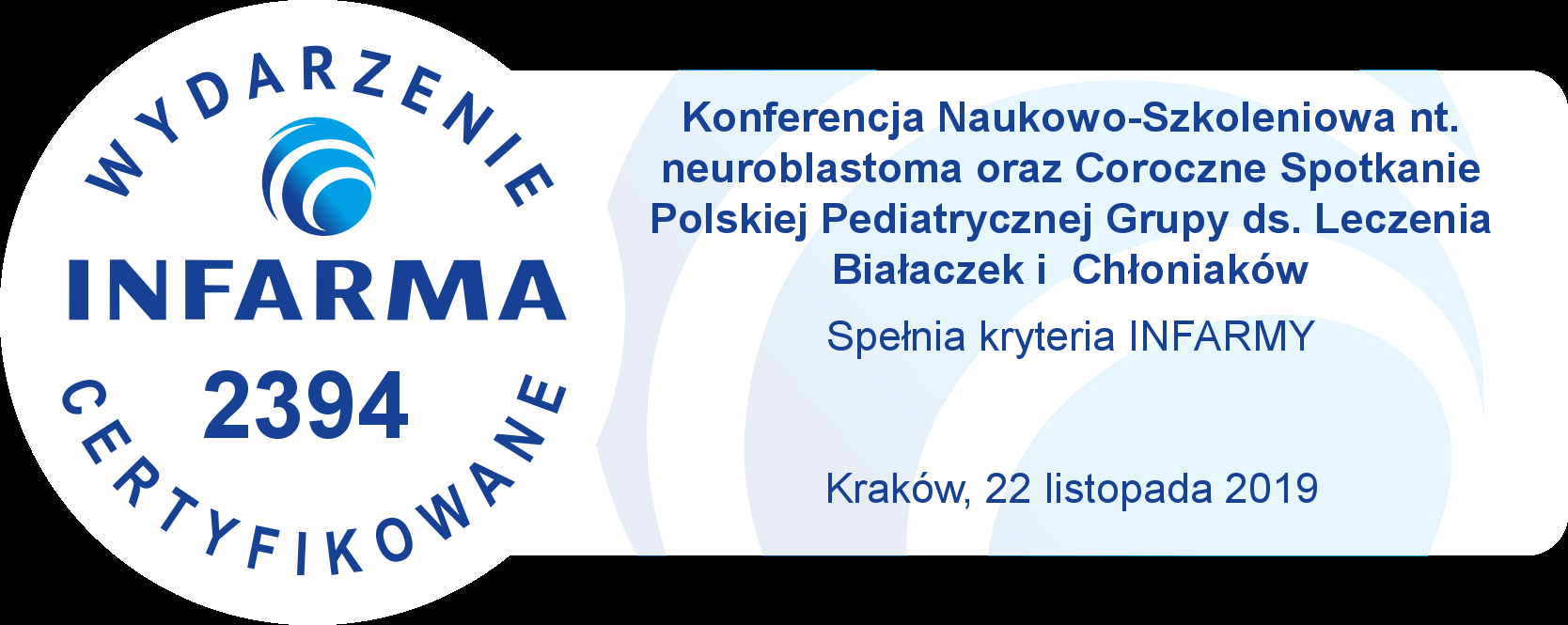 Pragnę poinformować, że w dniach 22-23 listopada 2019 roku Klinika Onkologii i Hematologii Dziecięcej w Krakowie organizuje dwa ogólnopolskie spotkania naukowo-szkoleniowe. W dniu 22 listopada 2019 r. odbędzie się konferencja naukowo-szkoleniowa, dotycząca jednego z najczęstszych nowotworów wieku dziecięcego, jakim jest neuroblastoma, a w terminie 22-23 listopada 2019 br. odbędzie się coroczne spotkanie Polskiej Pediatrycznej Grupy ds. Leczenia Białaczek i Chłoniaków (PPGLBC). Oba spotkania będą miały miejsce w sali konferencyjnej Hotelu Wyspiański.